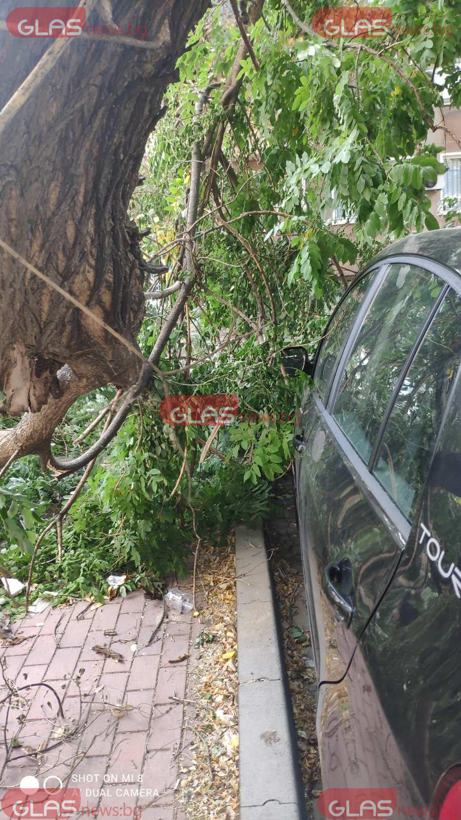 Вятър се разбесня насред жегата в Пловдив! Дърво се разцепи и стовари върху кола СНИМКИ