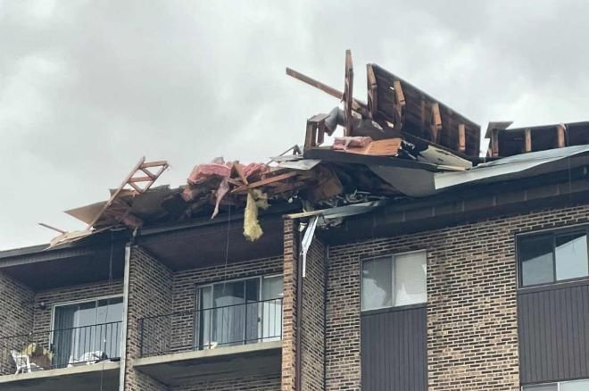 Най-сериозните провали са в жилищен комплекс на адрес 701 West Huntington Commons Road, където покривът на четириетажната постройка е изцяло отвеян от бурята.