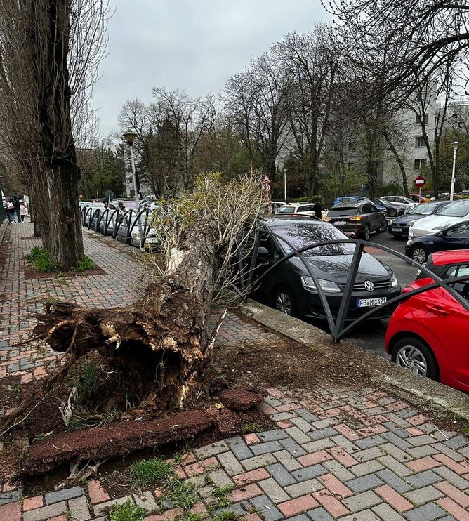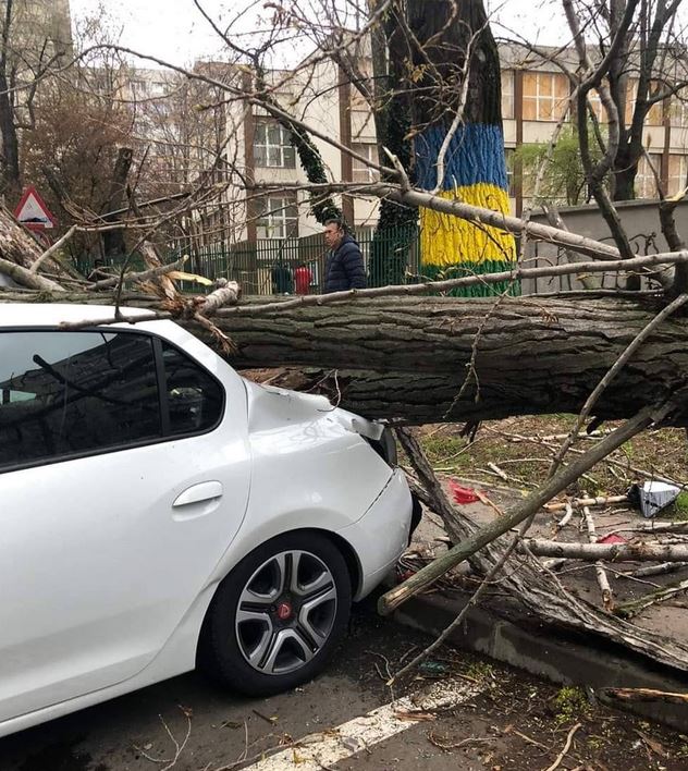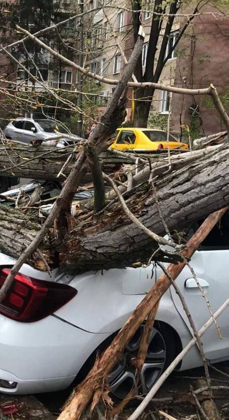 Силна стихия връхлетя румънската столица Букурещ. Силните пориви напразно са предизвикали и вреди. Изкоренени са дървета, които са паднали върху паркирани коли.