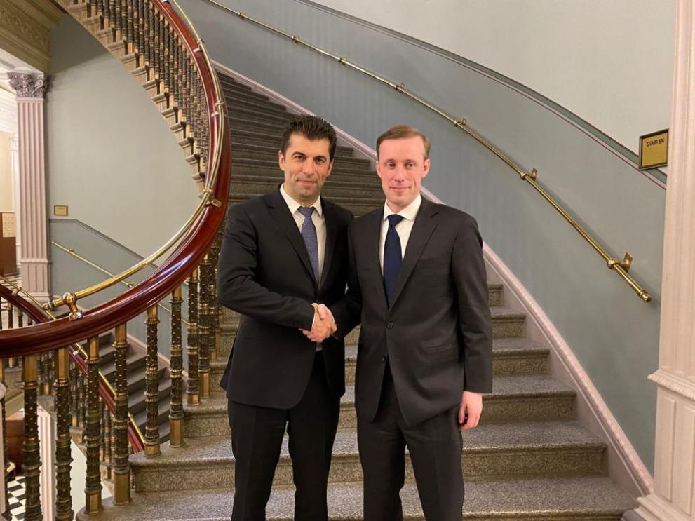 Министерски съвет След срещите си в Държавния департамент, министър-председателят Кирил Петков посети Съвета по национална сигурност на Белия дом, където беседва със съветника по национална сигурност Джейк Съливан. В рамките на визитата си във Вашингтон министър председателят Петков следва да организира още диалози в Конгреса и в Световната банка. В столицата на Съединени американски щати министър председателят е придружаван от министъра на енергетиката Александър Николов, министъра на защитата Драгомир Заков, както и от заместник-министъра на външните работи Велислава Петрова.