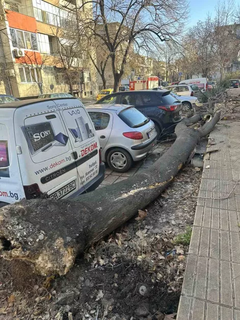 По-рано денем паднали клони и дървета бяха регистрирани и на бул. „ Шести септември “. Наложи се намесата на екипи на пожарната за обезопасяване на региона и попречване на произшествия.