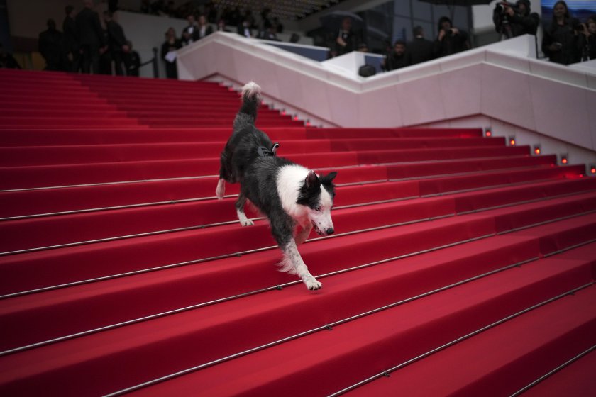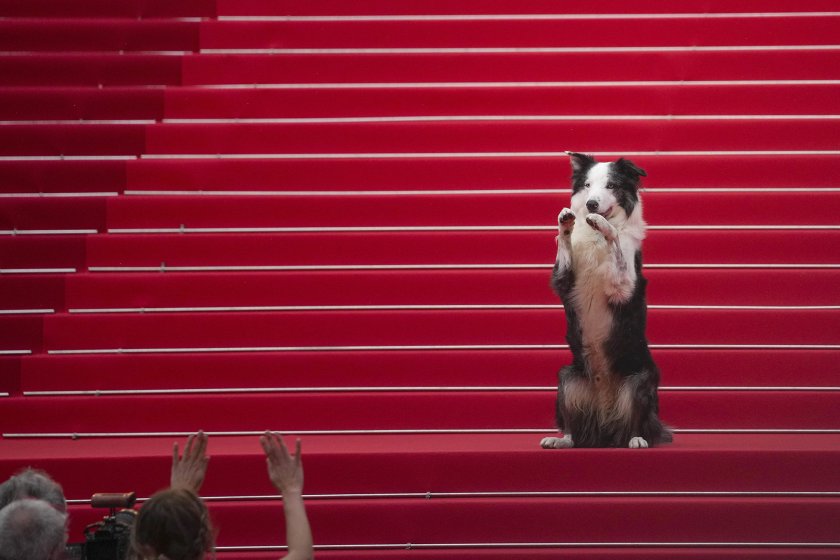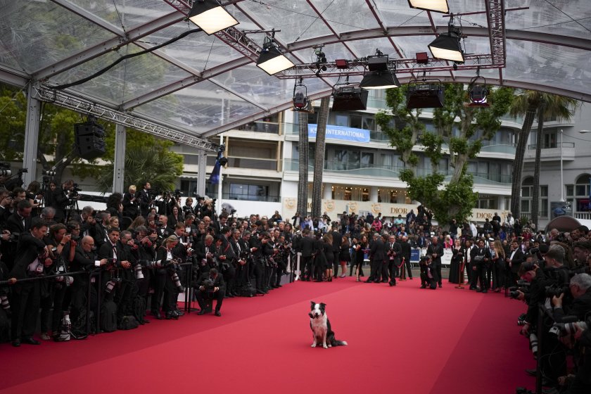 Симпатично чернобяло куче бордър коли се трансформира в любим на фотографите по време на церемонията за разкриване на фестивала в Кан.
