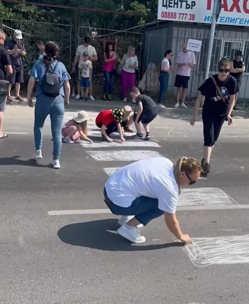 „ Не желаеме покруса, с цел да се вземат ограничения. Това е място, през което минават доста деца всеки ден. Рискуваме всекидневно живота си, с цел да пресечем. Днес го вършим с тебешир, на следващия ден може да е късно “, съобщи участник в акцията.