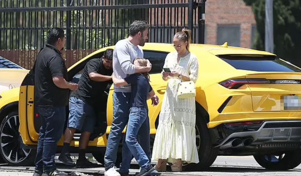 Детето придружавало двойката до дилърство на първокласни коли. В един миг Афлек му разрешил да седне зад кормилото на " Урус " -а. Според очевидци моторът на машината работел.