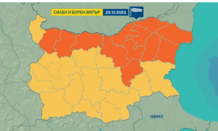 Синоптиците от Национален институт по метеорология и хидрология оповестиха за събота – 23 декември, оранжев код в 12 области от Северна и Североизточна България.