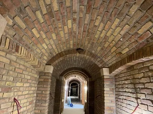 Допълнителни фотоси демонстрират под земята кулоар, облицован с тухли, който свързва постройките.