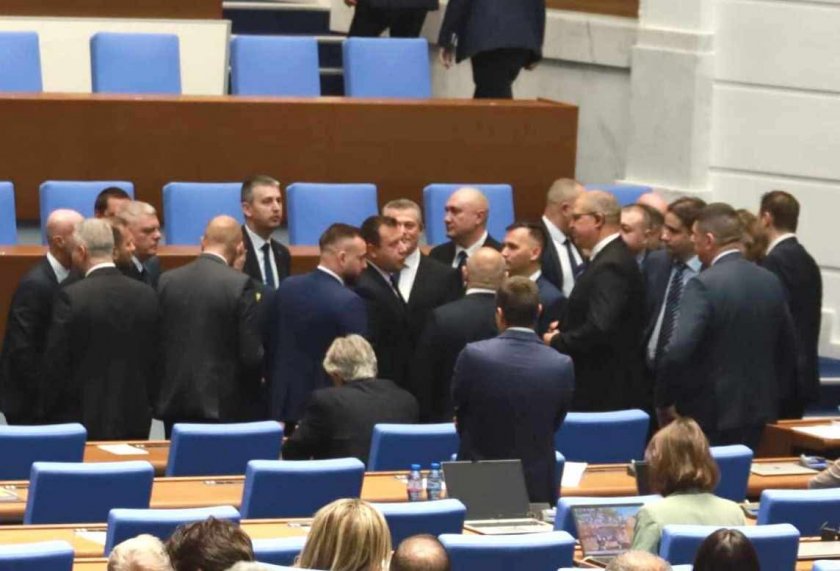 Скандалите в Народното събрание ексалираха за следващ път. След като на депутати от „ Възраждане “ им беше наложено наказване поради това, че нарекоха свои сътрудници от ПП-ДБ " еничари " и " фашисти ", хората на Костадин Костадинов наскачаха към трибуната за разпра.