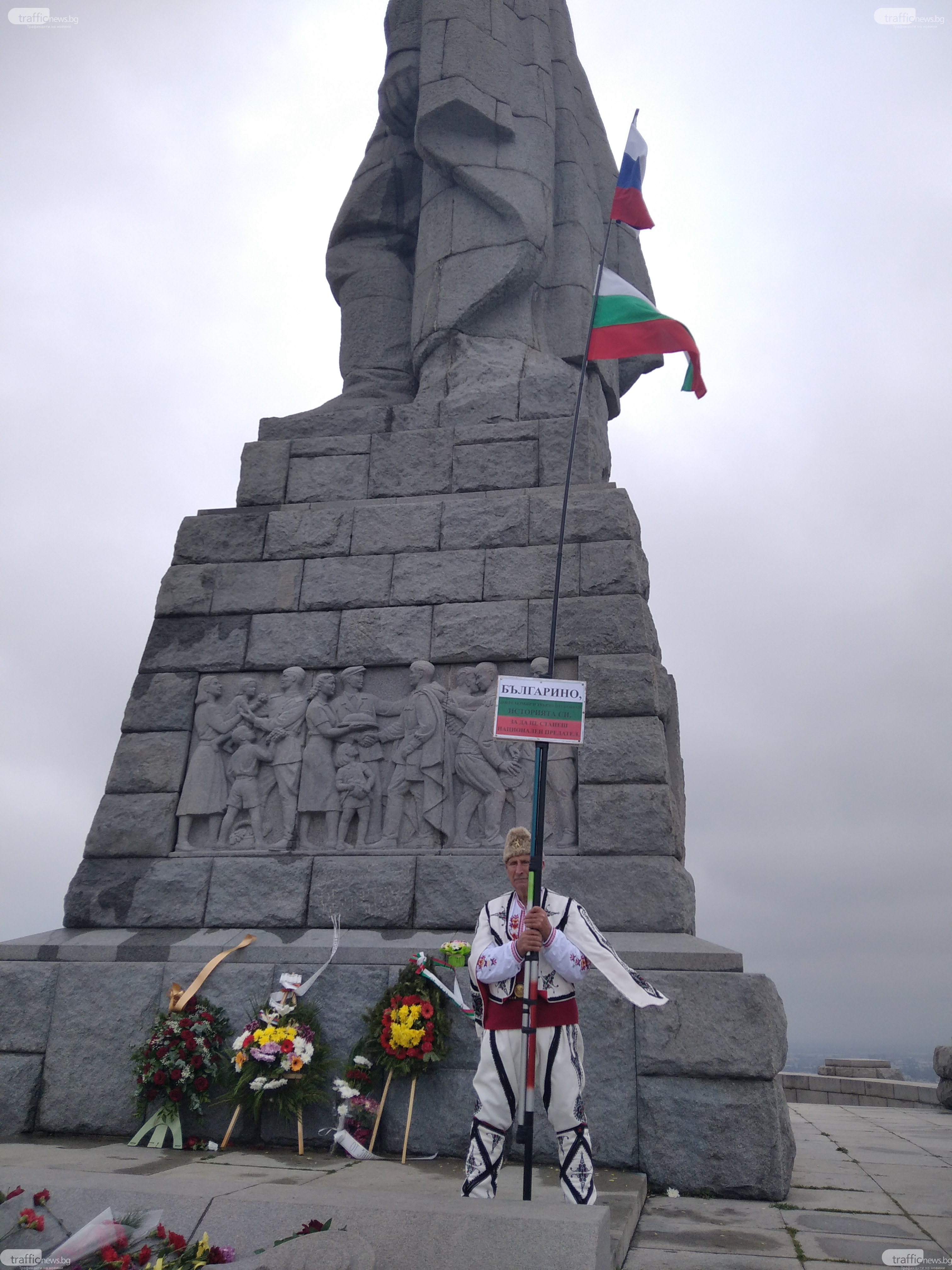 До Альоша обаче почтително от самото начало стоеше Борис Гаджаров от Карлово, чийто чичовци са починали при Драва. В ръцете си стискаше знамената на България и Русия и афиш с надпис „ Българино, добре помни историята си и твърдо в отстоявай, с цел да не бъдеш народен изменник “.