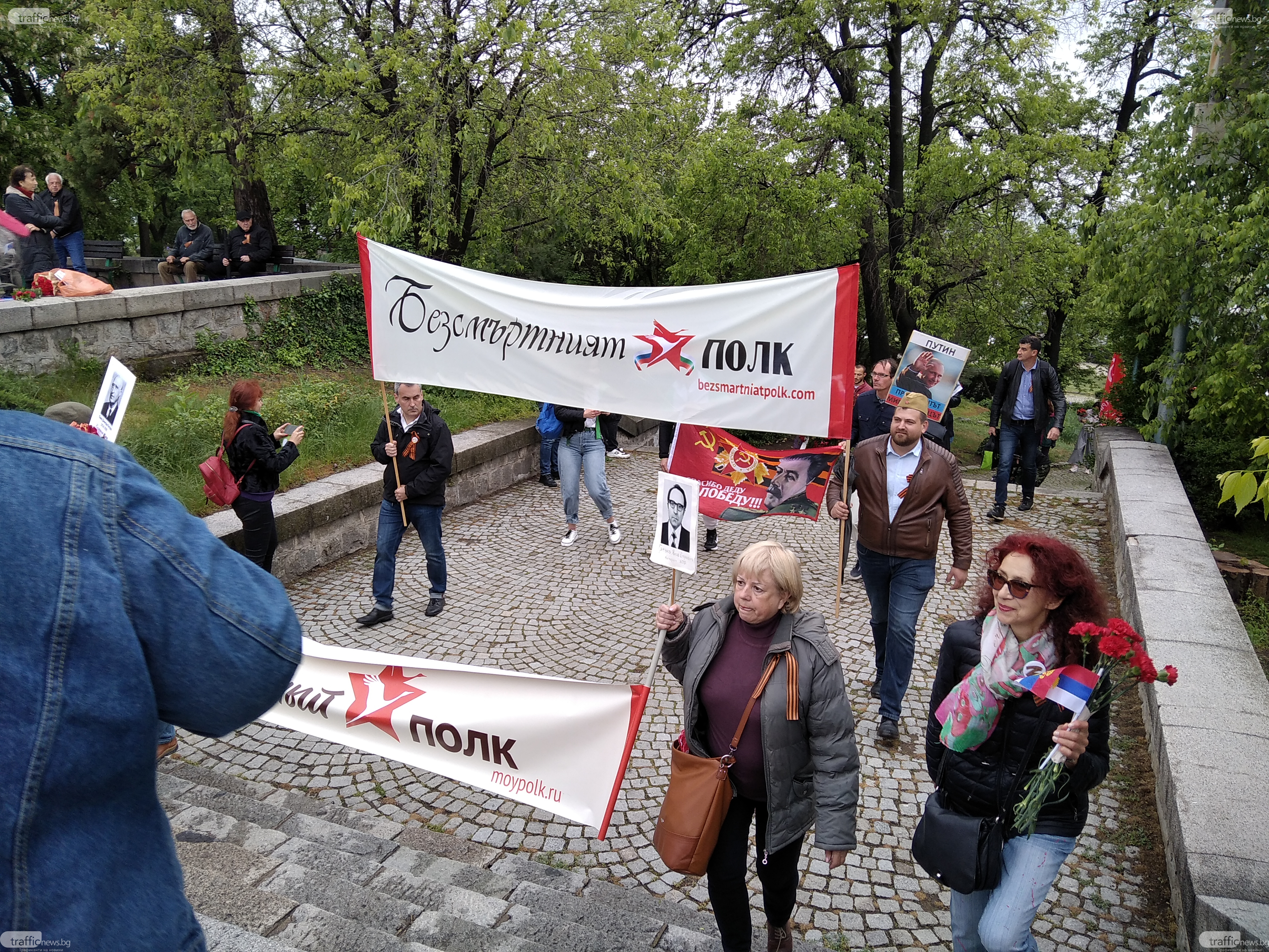 Граждани описаха пред TrafficNews , че вземат участие в „ Безсмъртния полк “, с цел да почетат паметта на околните си, загинали в боевете, които са ни освободили от фашизма. Развяха дружно български и съветски флагове и фотоси на умряли бойци. Десетки пък опънаха плакати с ликовете на Сталин и Путин.