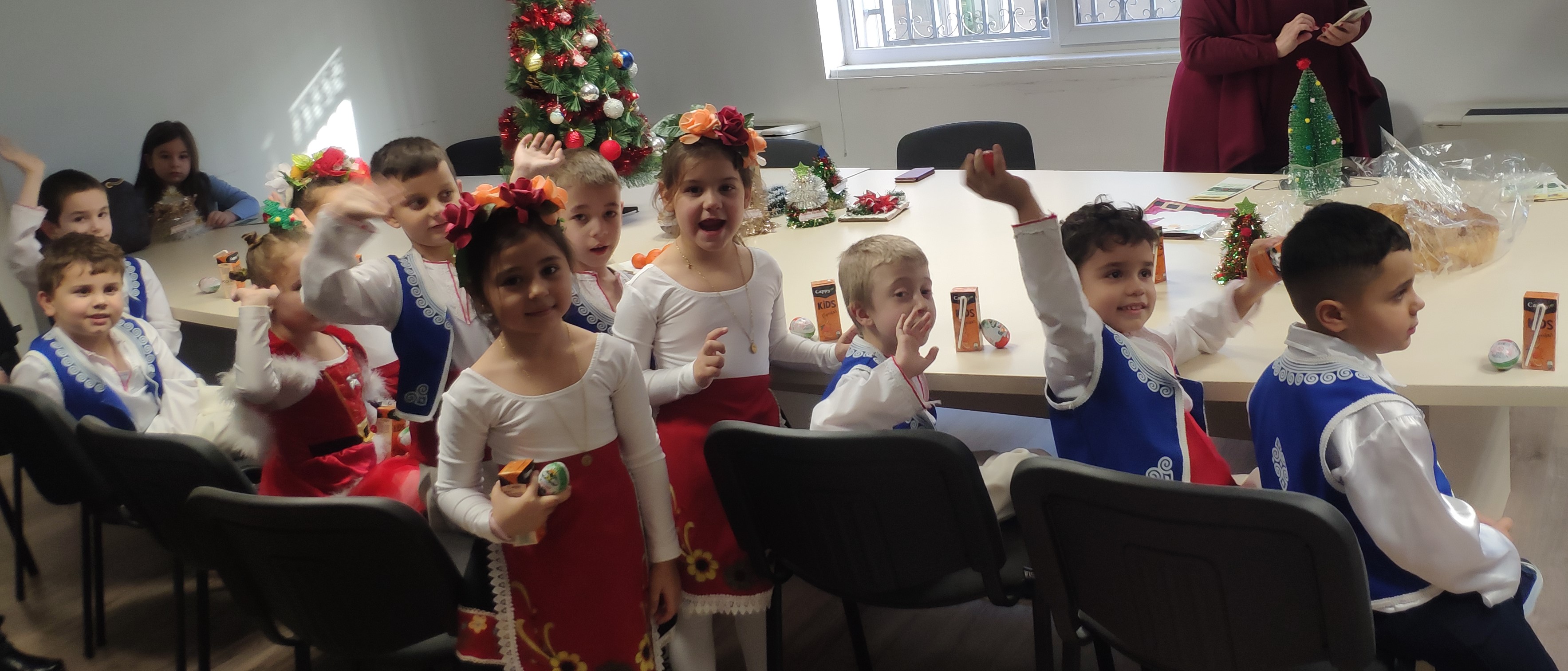 Скъпи посетители посрещна кметът на регион „ Източен “ Иван Стоянов. В навечерието на Коледните празници деца от ДГ “Щастливо детство “ поздравиха с празнична стратегия чиновниците от администрацията, като подариха на всички превъзходни сувенири, направени от тях.