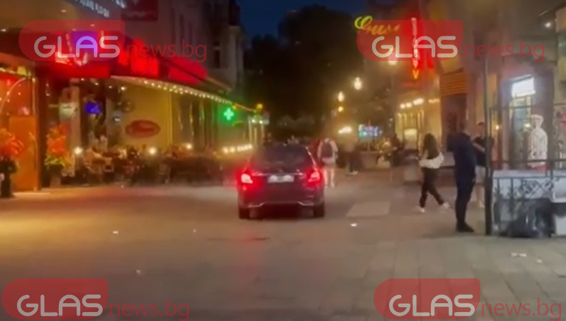 Скъпо возило навлезе в огромната пешеходна зона в центъра на Пловдив. Не е ясно по каква причина автомобилът се е озовал в пешеходната алея.