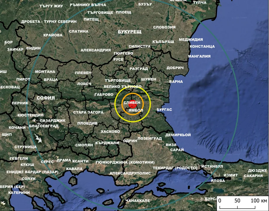 Земетресението със мощ от 2,4 по скалата на Рихтер е регистрирано в 5:14 часа на 9 километра северозападно от град Стралджа, Ямболско.