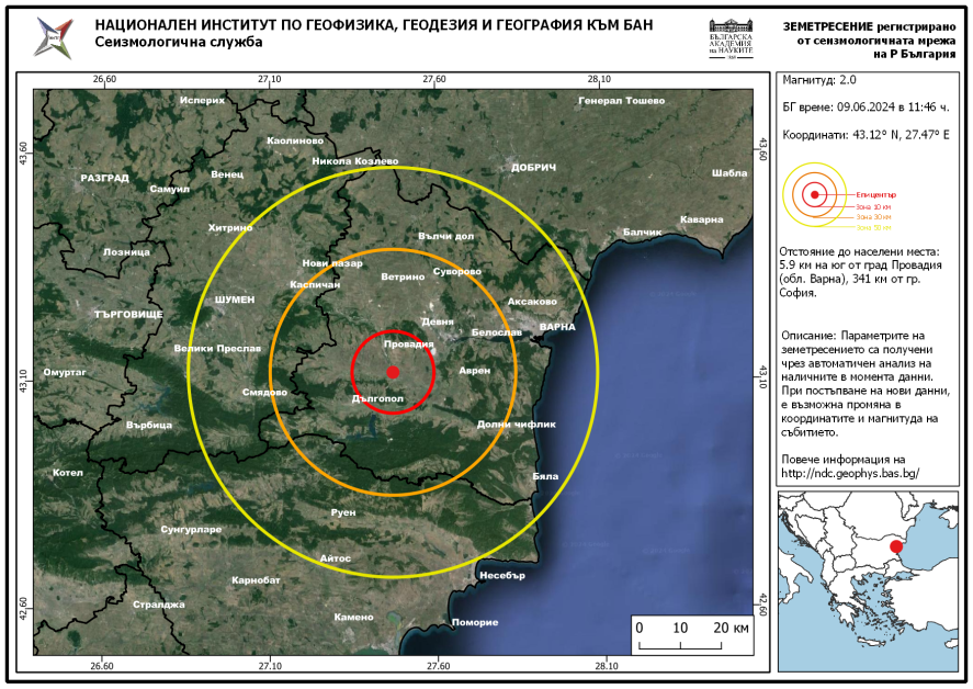 Той е регистриран малко пред 12 часа на обяд, на 6 километра южно от град Провадия, Варненско.