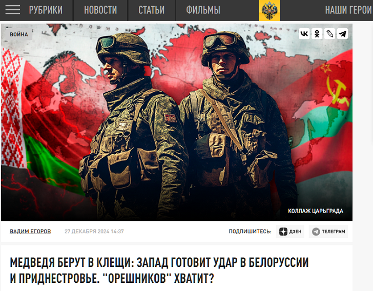 Освен в Беларус, турбулентна е обстановката и в Приднестровието . Наскоро съветското външно разузнаване заяви, че президентът на Молдова Мая Санду приготвя проект за военна интервенция в района. Според създателя на BelVPO, „ нахлуването на група от няколко хиляди наемници и помощта им в организирането на поддръжка от Украйна, унищожаването на мостове през Припят ще способства за основаването на плацдарм на десния бряг “.
