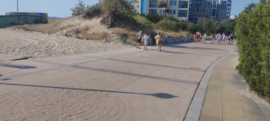 „ Слънчев бряг “ АД в профил пясъка по крайбрежната алея, насъбран в резултат на мощните ветрове. В рамките на няколко дни екипи на сдружението направиха обход на крайбрежната алея в най-големия курортен комплекс у нас и почистиха пешеходните пространства, които бяха наранени от ветровитото време и насъбрани с пясък от плажа.