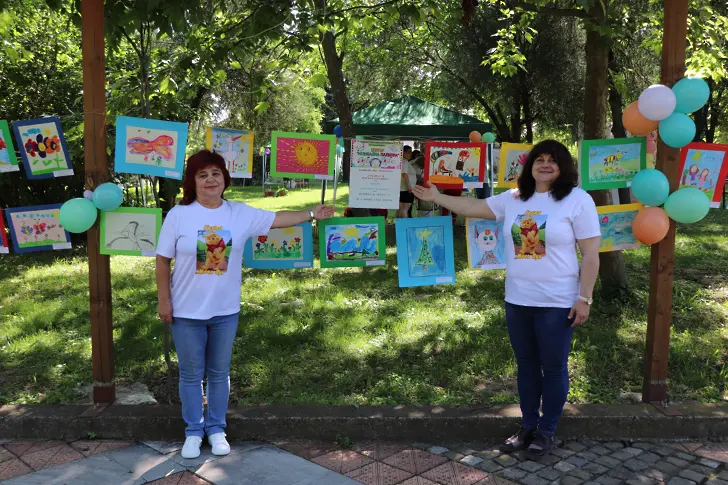 Благодарение на чудесната арка с балони, предоставена от The archers., сладурите имаха и самостоятелен ъгъл за фотоси. Като допълнение към празничната декорация ДГ „ Слънце ” окичиха централната паркова зона с рисунки от плана „ Рисувам музиката ” по Национален парк „ Хубаво е в детската градина ” 2023/2024г. Така дребни и огромни, с бонбон в ръка и усмивка на уста означиха уместно денят на детето!