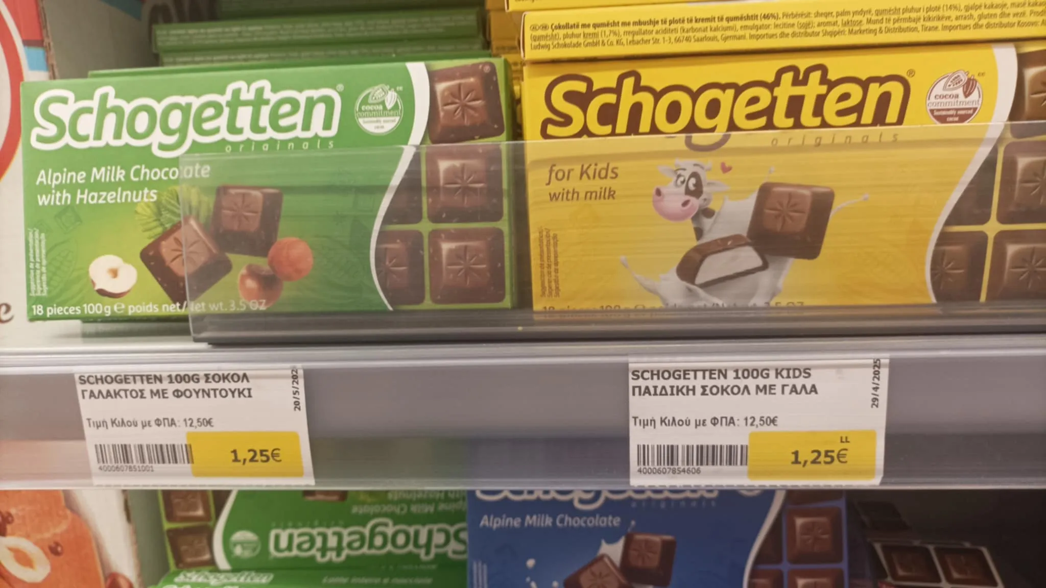 Слънце, море, маслини... и на ниска цена шоколад. Не, това не е туристическа листовка за Атина, а действителна ценова информация от центъра на гръцката столица. Популярен шоколад, добре прочут и на българския пазар, там коства 1,25 евро - или към 2,45 лв..