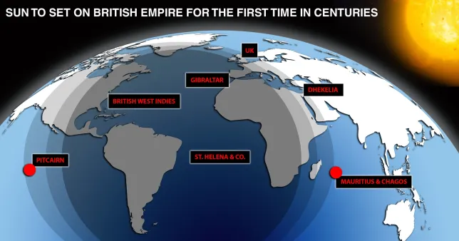 Когато контролът над островите Чагос е публично преотстъпен, консуматор на обществените мрежи написа: „ Ако приемем, че това се случи преди март, това значи, че слънцето залязва на островите Питкерн (18:50 локално време: UTC-8, 02:50 лондонско време: UTC ), слънцето ще залезе над цялата английска територия за първи път от над 200 години. “