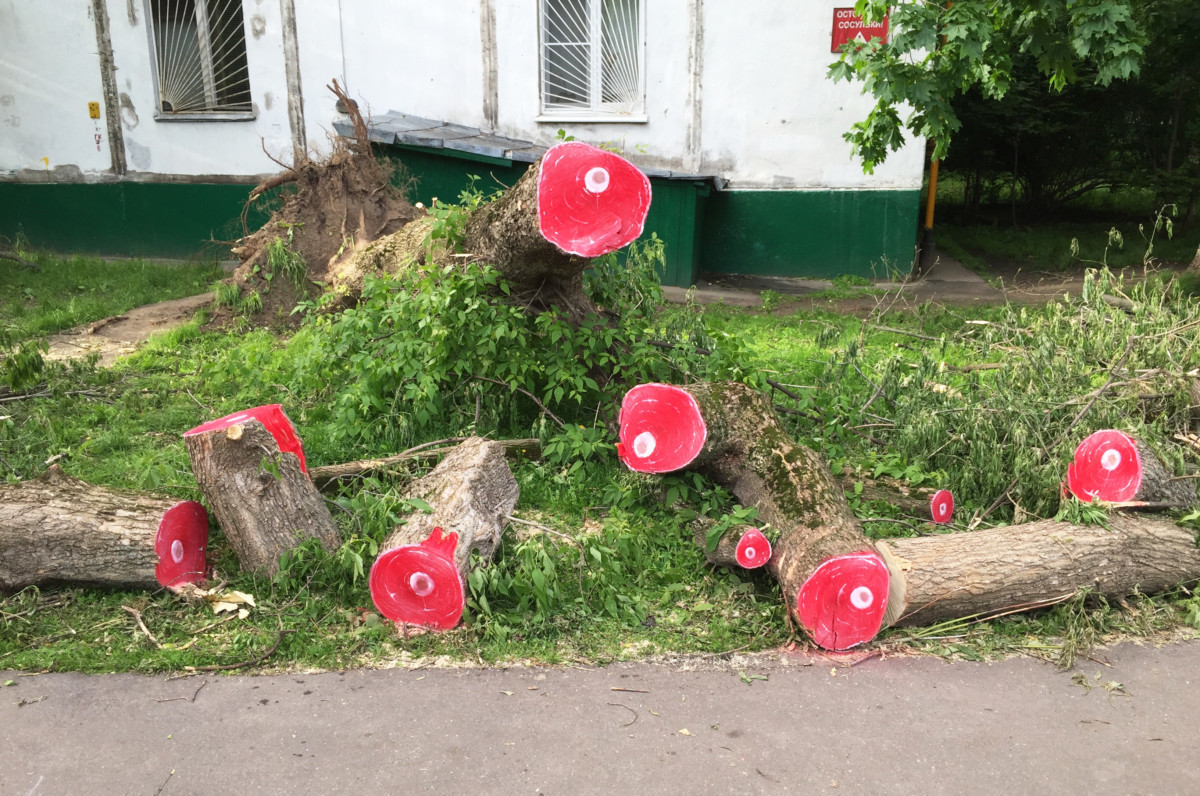 Юни 2017 година остава за дълго в паметта на московчани: през града минава нечуван вихър, изкоренява дървета (както споделят в Русия – изтръгва „ с месото “) и отнася покриви на къщи. Работата „ Месо “ се появява по следите на това трагично събитие и изобразява на стволовете на дърветата сурови стекове.