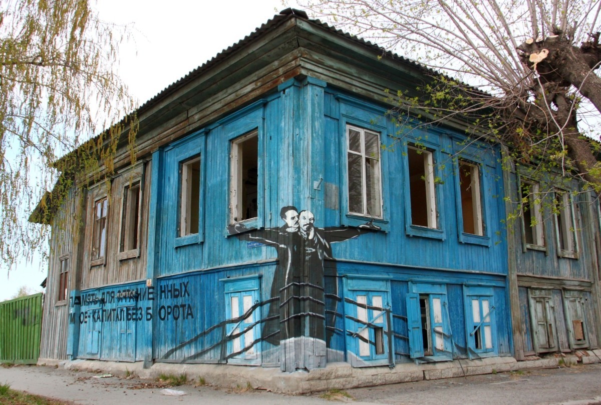 Графитите, напомнящи сцена от „ Титаник “, се появяват в родния град на художника, Шадринск, на кръстовището на две улици, които носят имената на двама идеолози на комунизма. В графитите обаче вместо Кейт и Лео са изобразени немският болшевик Карл Либкнехт, който шепне нещо съкровено на ухото на вожда на международния пролетариат Владимир Ленин.