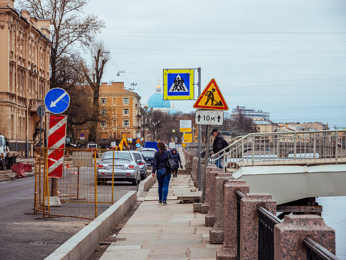 След една протестна акция в Петербург, при която са арестувани над хиляда души, на крайбрежната улица „ Фонтанка “ се поява „ нов “ пътен знак, на който служители на реда арестуват „ пешеходец “. Художникът основава тази своя творба тъкмо против постройката на ръководството на Федералната работа за сигурност.