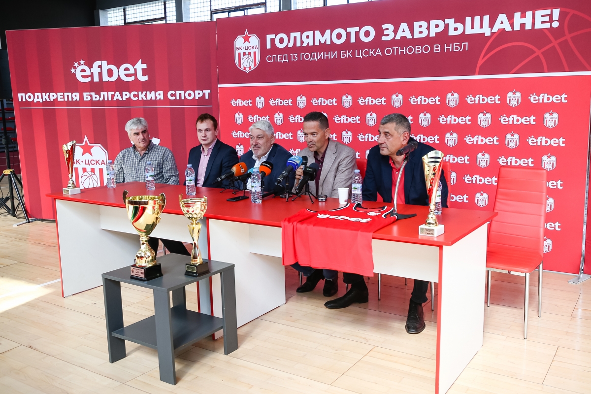 " Готови сме за високи достижения. Това става с помощта на главния ни спонсор efbet. Благодарим на семейство Найденови, които са генетично свързани с ЦСКА и не гледат на плана единствено като бизнес начинание и реклама, а като на идея. Благодарен съм, че повярваха в нашата идея, да вървим малко по малко към Европа. Партньорството е дълготрайно “, изясни членът на УС Александър Чакмаков.