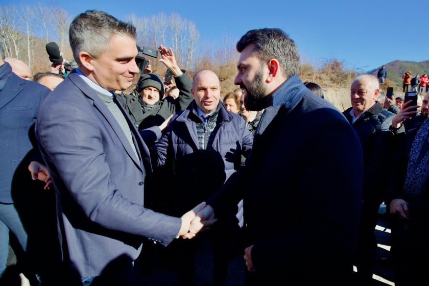 Гроздан Караджов - вицепремиер и министър на превоза в оставка: " Днес е незабравим ден, тъй като през днешния ден идва техния министър, моя сътрудник на превоза тука и сме се разбрали това да е и символния ден, след който пътя е отворен за потребление. "