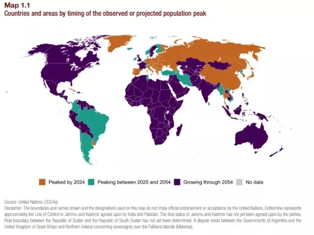 Очаква се международното население да продължи да нараства през идващите 50 или 60 години, достигайки пик от към 10,3 милиарда души в средата на 2080-те години, спрямо 8,2 милиарда през 2024 година