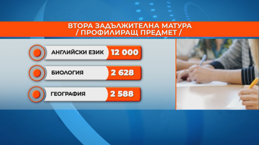 И тази година най-вече възпитаници ще се явят на втора матура по британски език. Следват изпитите по биология и география. Учениците от професионалните гимназии пък ще поставят вместо втора матура държавен изпит за професионална подготовка.
