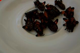 Деликатесът на деня са Thasus acutangulus или елементарни мескитови буболечки. Те се хранят със сока, нежните листа и зелените шушулки на бобовото дърво Мескит, срещащо се в Югозападните Съединени щати и Мексико.