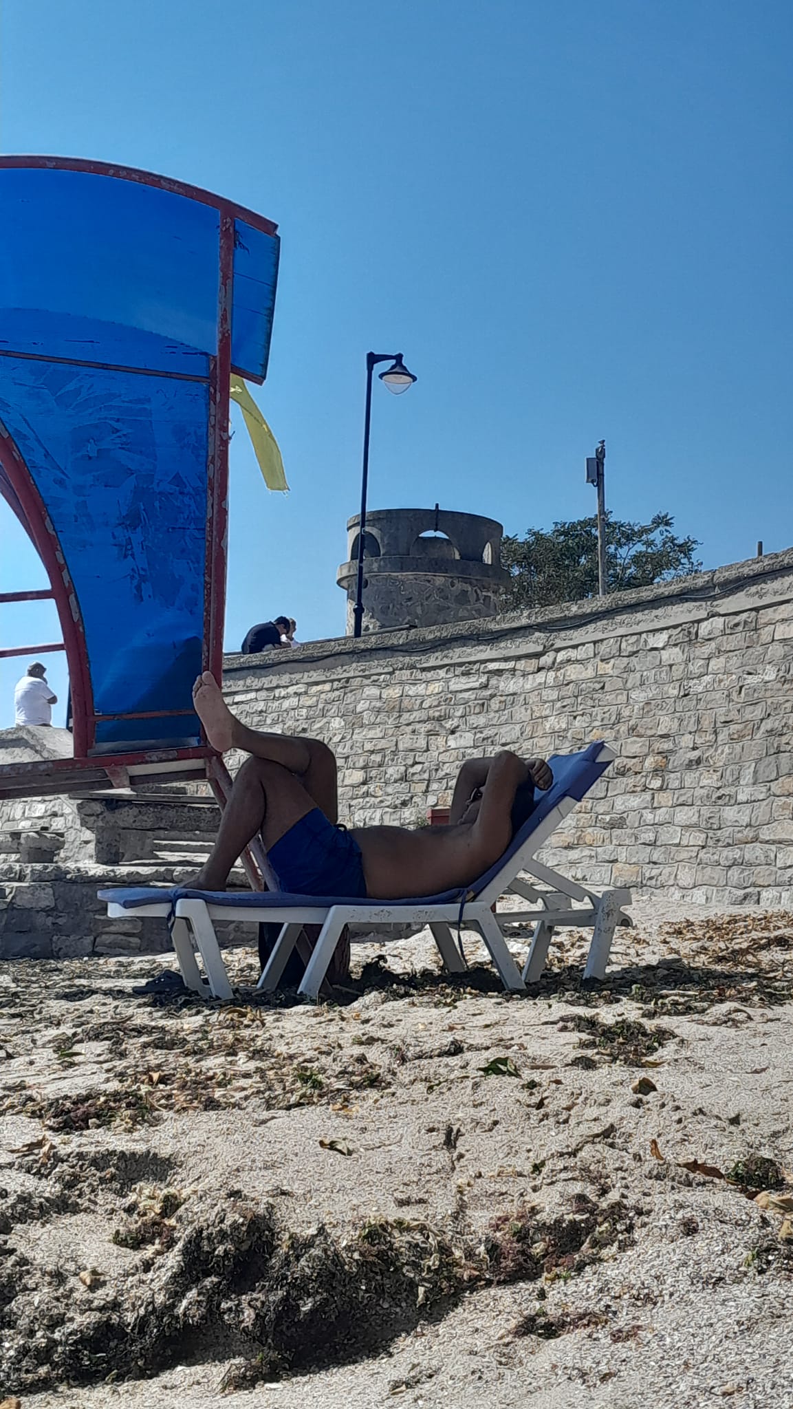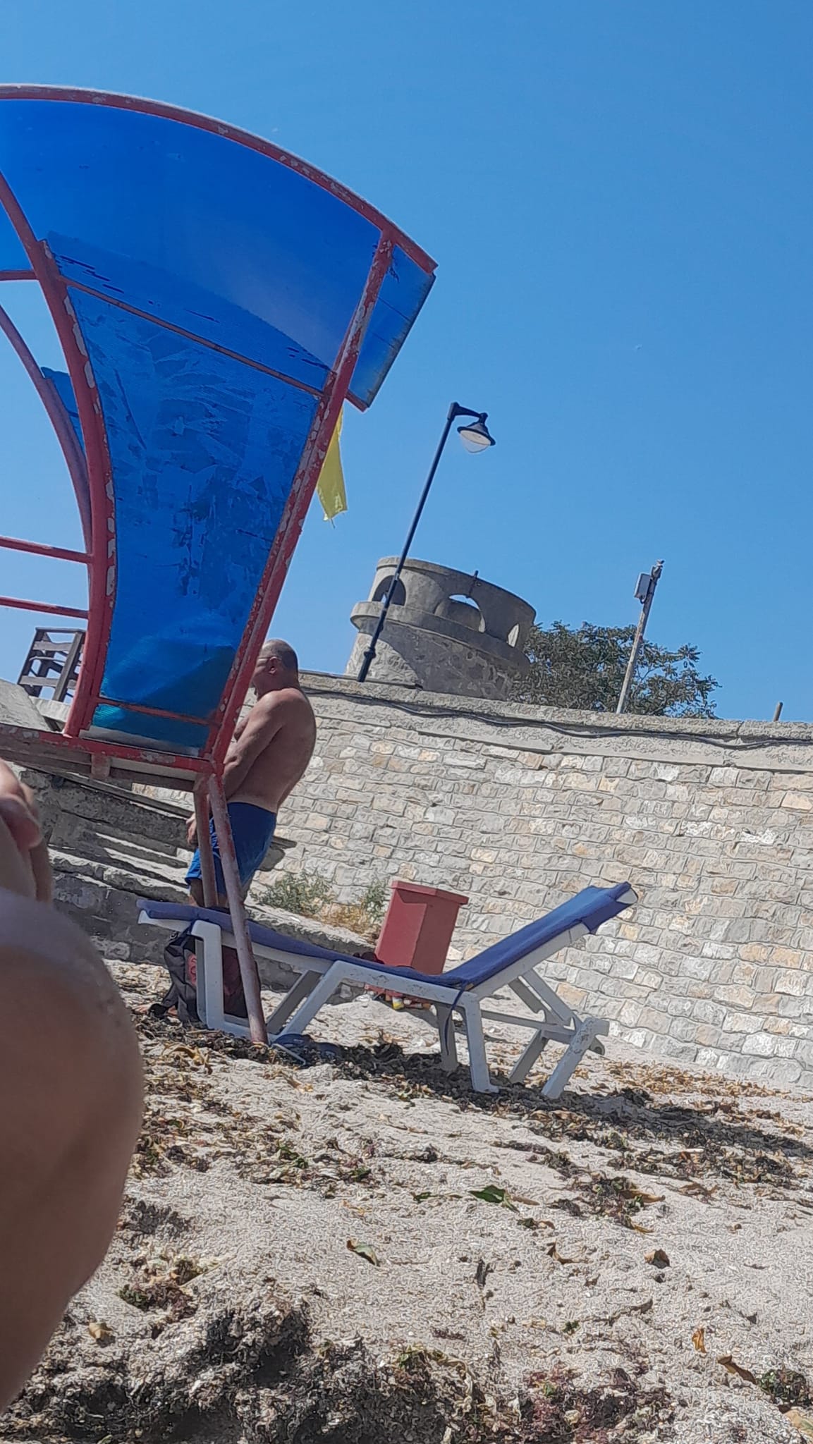 След дълга обедна сънливост спасителят на втори пост на плажа в Стария Несебър реши да се облекчи пред плажуващите. Срам огромен!Моля виновните за назначението на този човек да се сезират! За това прикани неизвестен консуматор във Фейсбук, снимал на видео " срама " на спасителя: