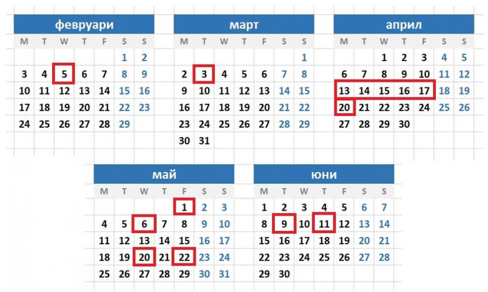 През април пък е традиционната им пролетна почивка. Тази година за учениците сред I до XI клас последният образователен ден ще бъде 10 април (петък) и ще се върнат назад в класните стаи на 21 април (вторник). Дванайсетокласниците пък ще почиват единствено за Великден - от 16 (четвъртък) до 20 април (понеделник) в това число.