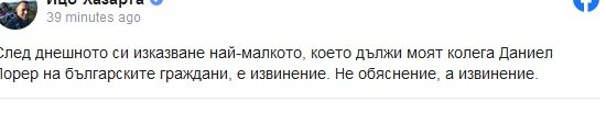 " След днешното си изявление най-малкото, което дължи моят сътрудник Даниел Лорер на българските жители, е опрощение. Не пояснение, а опрощение ", това написа депутатът от Политическа партия Христо Петров, прочут като Ицо Хазарта, във фейсбук профила си.