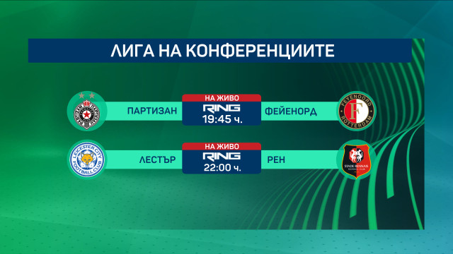 След него, към 22:00 ч. още веднъж по RING " Лестър " ще одобри " Рен " в едно от дербитата на конкуренцията.