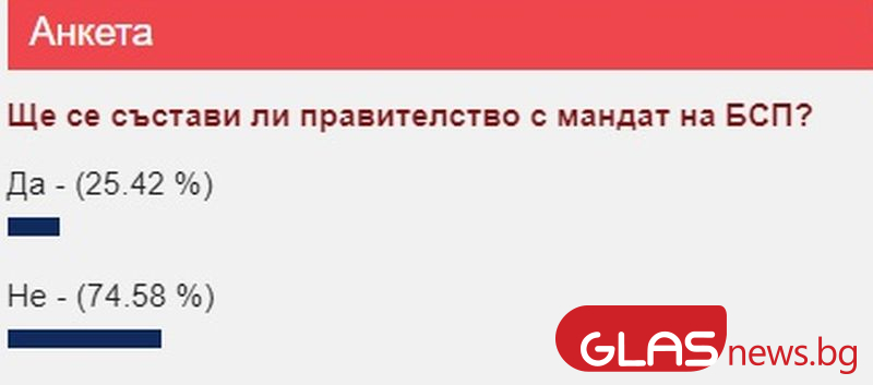 След като на 18 юли президентът Румен Радев връчи третия мандат на Българска социалистическа партия, попитахме читателите на GlasNews ще се сформира ли държавно управление съгласно тях. Очевидно реализмът надвива измежду читателите ни, тъй като съвсем 75% от тях дадоха отговор с безапелационното " Не ". Докато анализатори, социолози и политолози разсъждаваха по какъв начин изцяло евентуално е тъкмо третият мандат да бъде осъществен, нашите читатели прозряха истината - това е невероятно.