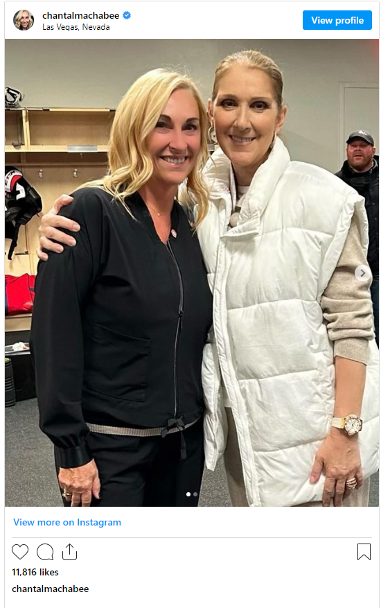 След 10 месеца без обществена поява Селин Дион най-сетне напусна дома си. Тя отиде на хокейния мач сред " Монреал Канейдиънс " и " Златните рицари " в Лас Вегас.