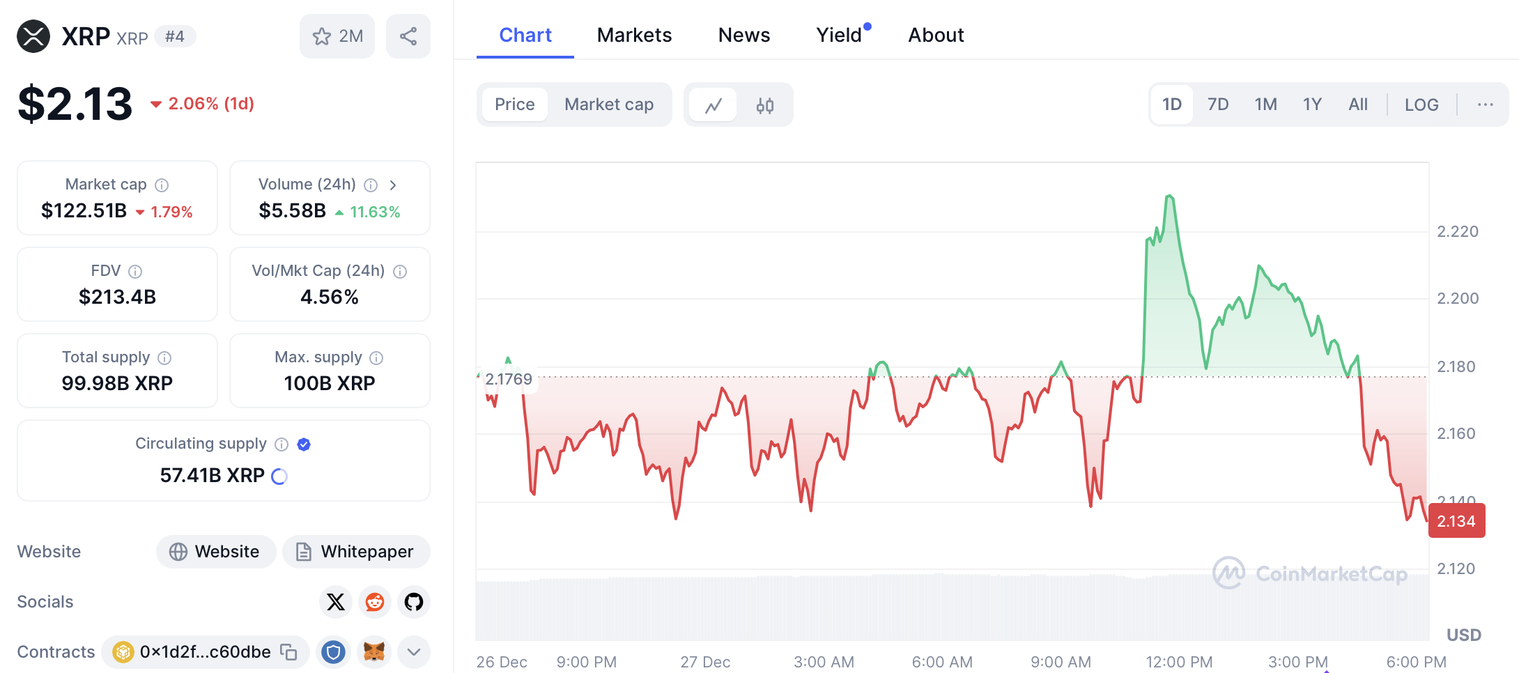 След като през последните дни претърпя обилни съмнения в цената, XRP се задържа към най-ниското си равнище от $2.13.