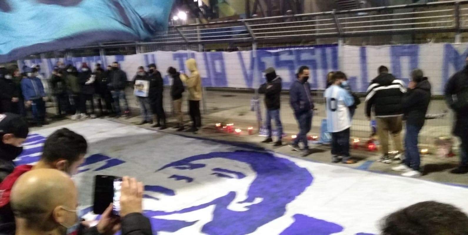 Дори локдауна в Неапол не съумя да спре хилядите почитатели да покажат, че футболът не е просто игра, като пред един от ликовете на Марадона ситуацията изглеждаше като по време на футболен мач.