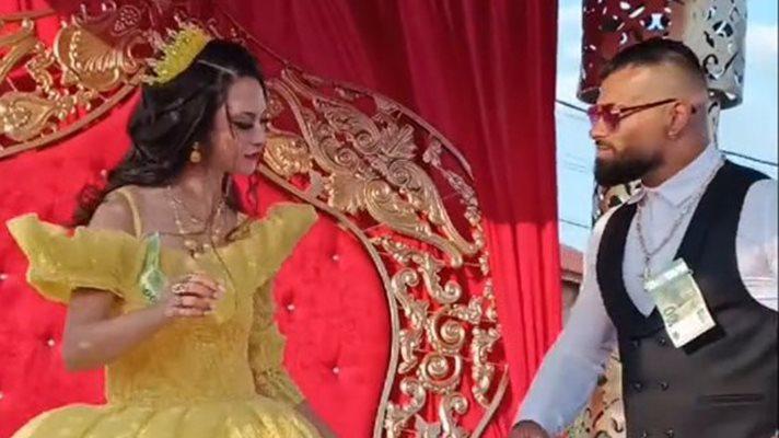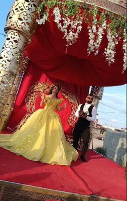 Г-жа Андреева пък не залага на обичайна бяла булчинска рокля. А избира да е с жълта. На главата си Любка е поставила корона, което демонстрира, че към този момент ще бъде същинска принцеса.