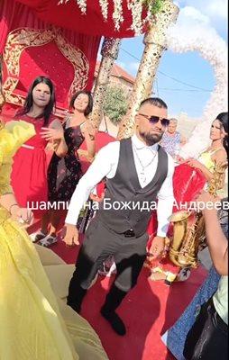 Церемонията е много обилна, както прилича за подобен вид женитба. Божидар и булката му са качени на голяма сцена, от която мятат гьобеци и забавляват гостите си.
