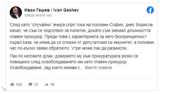 Това разяснява във " Facebook " Иван Гешев.