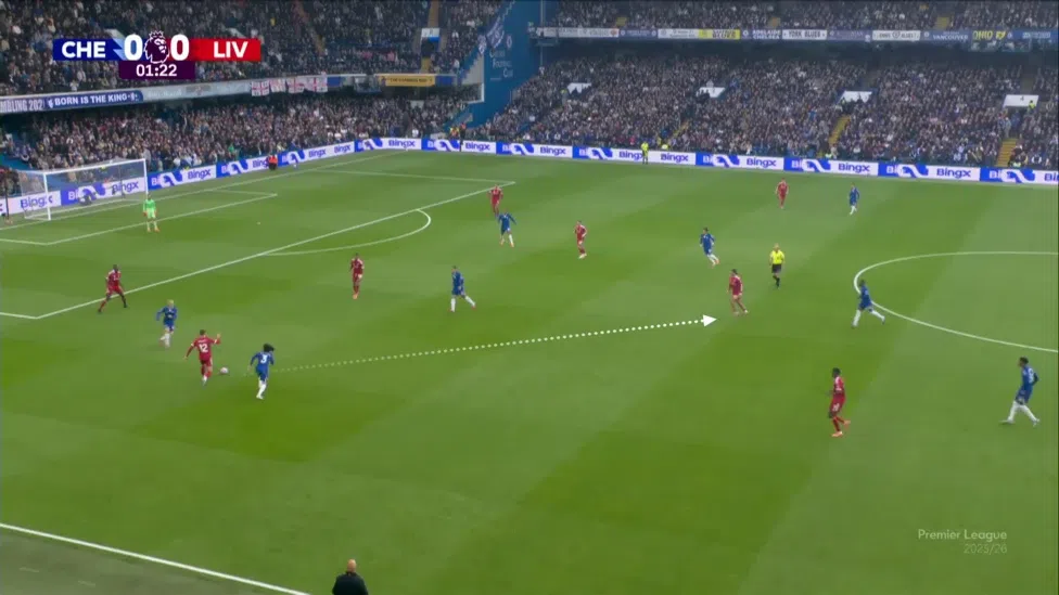 В загубата от Челси Слот заложи на Конър Брадли като десен бек, който се оказа в сходна обстановка. Гарначо го притискаше високо, а достъпът до крайните зони беше стеснен.