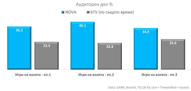 Според формалните данни, разликата сред резултатите на „ Игри на волята “ и форматите по втората телевизия в класацията остава огромна.