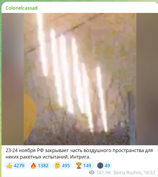 Внезапно няколко военни репортери и военни специалисти оповестиха, че Русия сякаш затваря част от въздушното пространство за идващия тест на RSD на 23 и 24 ноември, които към този момент бяха оповестени като последни дати. Все още не е известно коя ракета ще бъде тествана този път.
