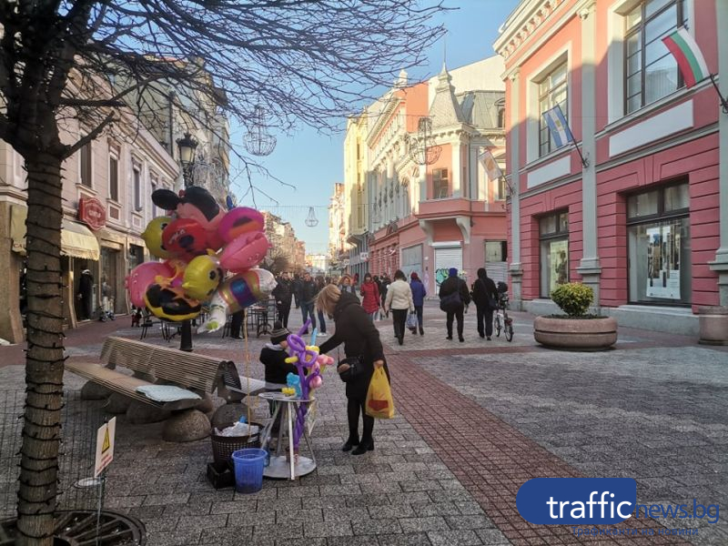 След няколко мрачни дни слънцето се появи, а термометърът по обяд мина 10 градуса. Хубавото време изкара пловдивчани на открито. Центърът живна, дребни и огромни се разходиха по Главната и в Цар-Симеоновата градина.