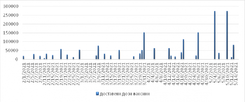 През април и май получените дози бяха в пъти повече от поставените. През февруари са били употребявани 62% от доставените през месеца ваксини, през март - 55%, през април - 45% и в първата половина на май – 44%.