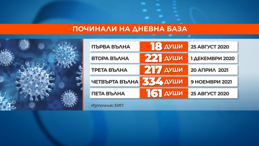 334 умряли единствено за един ден - това е връх, маркиран в четвъртата вълна. Втората вълна записва 221 умряли за ден.