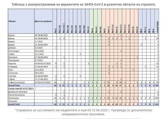 Нараства броят на по-бързо популяризирания вид BA.5.x, надлежно, през месец юни 37,7%, а през юли 68,4% от пробите са от този подвариант.