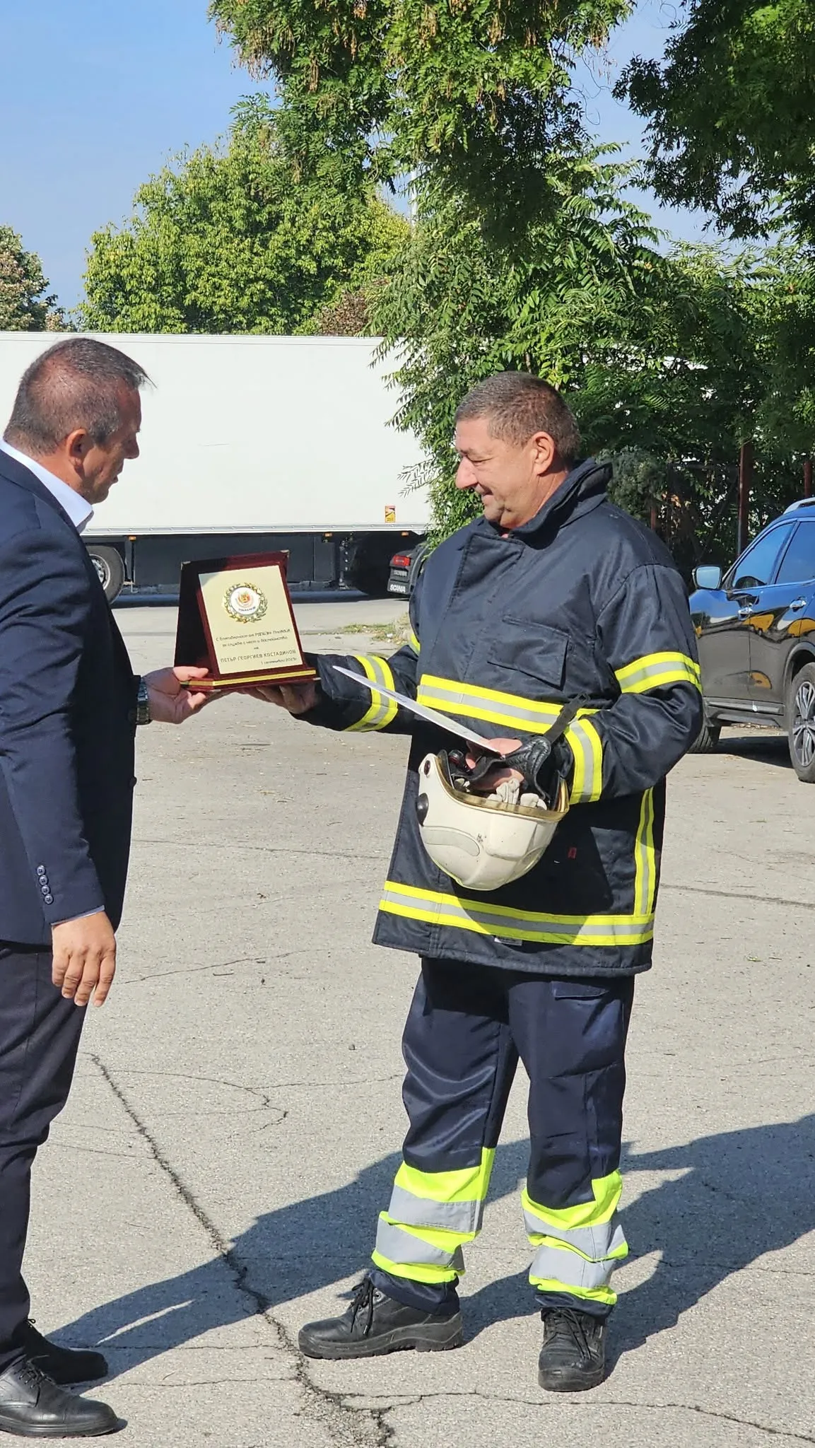 " Трудна е раздялата с сътрудници, изключително откакто повече от 26 години сте делили компликации и тествания в пожарната. През тези години дружно срещахме рискове, побеждавахме провокации и си доказахме че зад думата " сътрудник " стои същинското значение на " брат ". Всяко дежурство, всяка паника, всяка избавена човешка орис ще останат вечно в сърцата ни. Благодарим на сътрудника Петър Костадинов - от четвърта промяна на Втора РСПБЗН за поддръжката и другарството, които ни съпътстваха през целия ни професионален път. Оставаш част от екипа на Втора РСПБЗН, където дружно изградихме история, в която човечността и смелостта са над всичко.