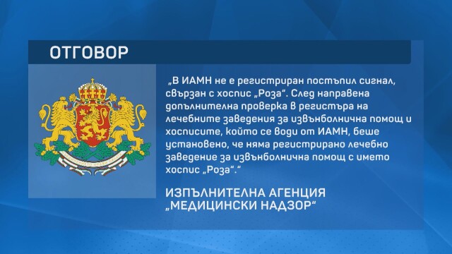 Търсим управлението на дома за коментар. На място откриваме жена, която твърди, че е по заменяне. Собственичката на дома Снежана Димитрова отговори на въпросите ни по телефона, поради здравословни проблеми на брачна половинка си.